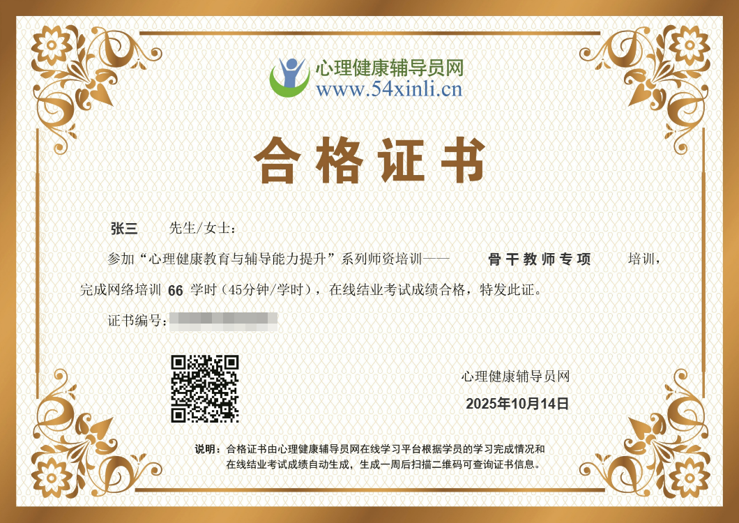 2.培训目标:重点提升中小学骨干教师对学生一般心理问题的评估与干预能力,熟练掌握个体与团体心理辅导基本技能,将学生心理问题解决在萌芽阶段,打造学校心理健康工作的中坚力量。